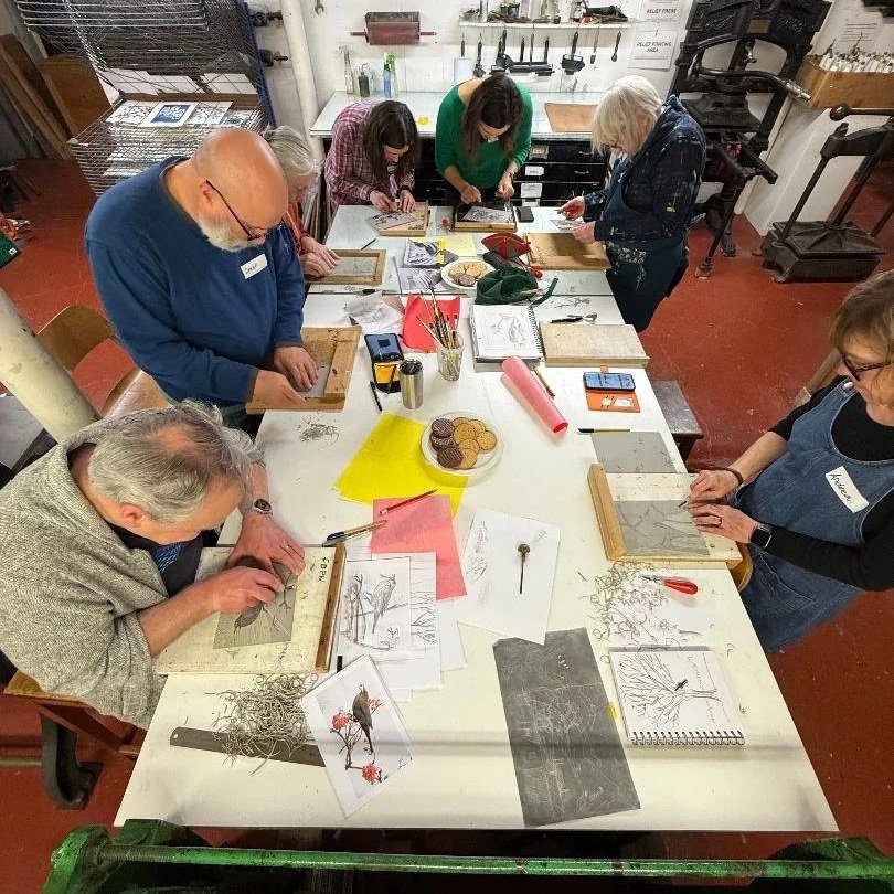 No matter your experience level, you’ll receive an in-depth walk-through of the process and a tour of the workshop—the presses, inks, papers, and layout area—so you get a feel for what’s involved. You’re supported throughout, and encouraged to make the most of your time, chat with other artists, and enjoy being creative in a friendly space. By the end of the day you’ll come away with your own original prints and a real sense of achievement.